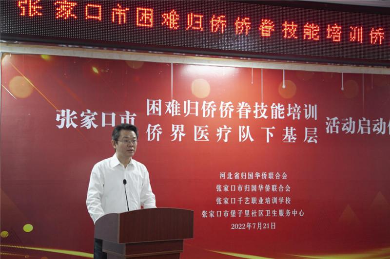 2022年7月21日,“困難歸僑僑眷技能培訓”和“僑界醫療隊下基層”活動啟動儀式在張家口市舉行。“困難歸僑僑眷技能培訓”活動旨在通過僑幫僑的方式,提升歸僑僑眷職業技能水平,實現就業和再就業,增加家庭收入,促進僑界困難群體共同富裕。“僑界醫療隊下基層”活動旨在通過組織僑界醫療人員赴邊遠農村地區開展義診醫療、專家咨詢、送醫送藥等服務活動,為歸僑僑眷和人民群眾送溫暖、送健康。